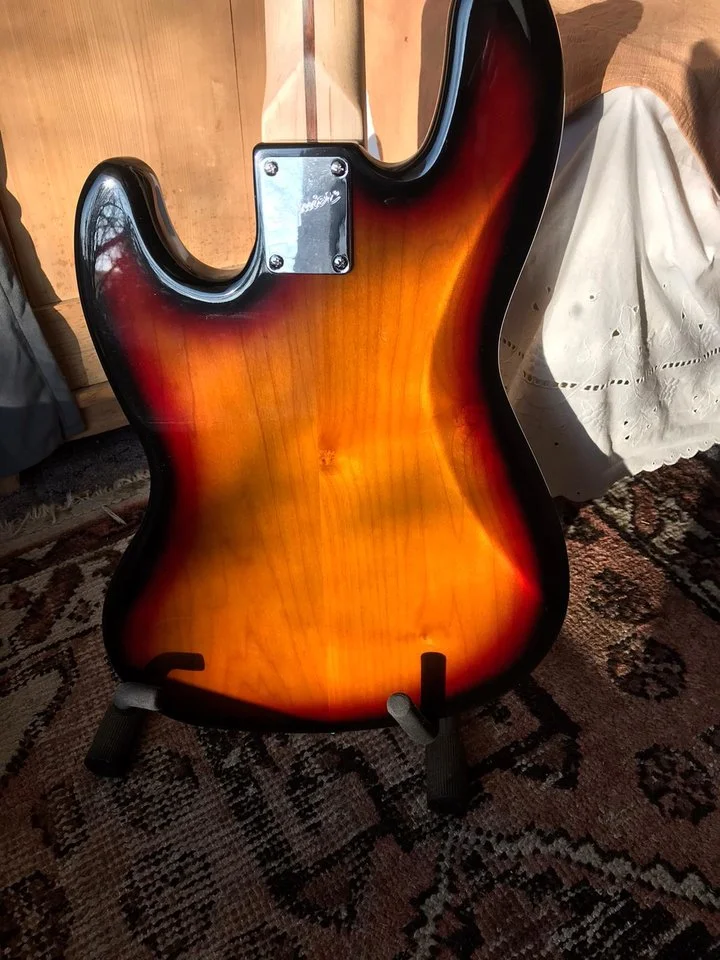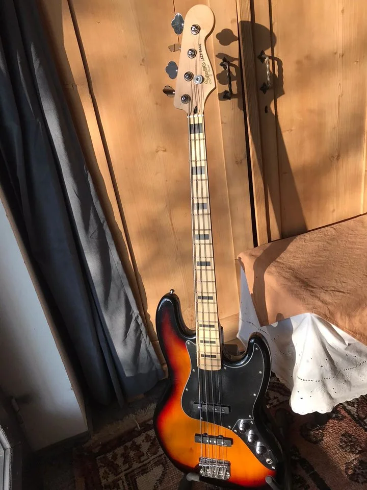 Biete fast neuwertigen Squier by Fender Jazz Bass (Folie noch auf Pickguard). Kleine Macke auf Rückseite (siehe Foto)