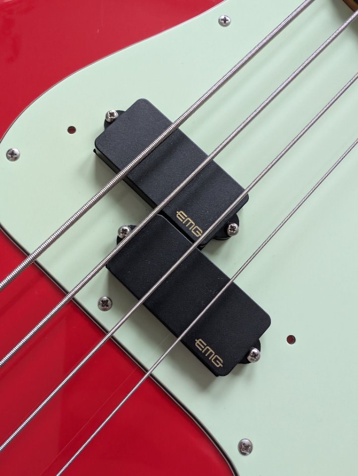 Die Pickups hab ich getauscht gegen EMG. Es ist die PA Variante mit Alnico Magneten für einen etwas traditionelleren Ton.