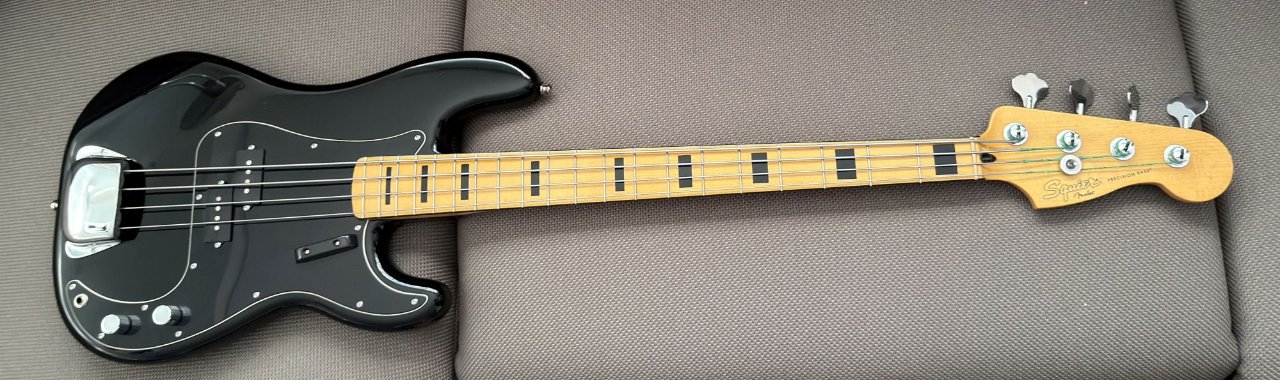 Schwarzer Classic Vibe 70s Preci mit Ahorn-Griffbrett und schwarzen Block-Inlays aus der "Crafted in China"-Serie zu verkaufen. (aus gesundheitlichen Gründen verkaufe ich meine Longscale-Bässe )