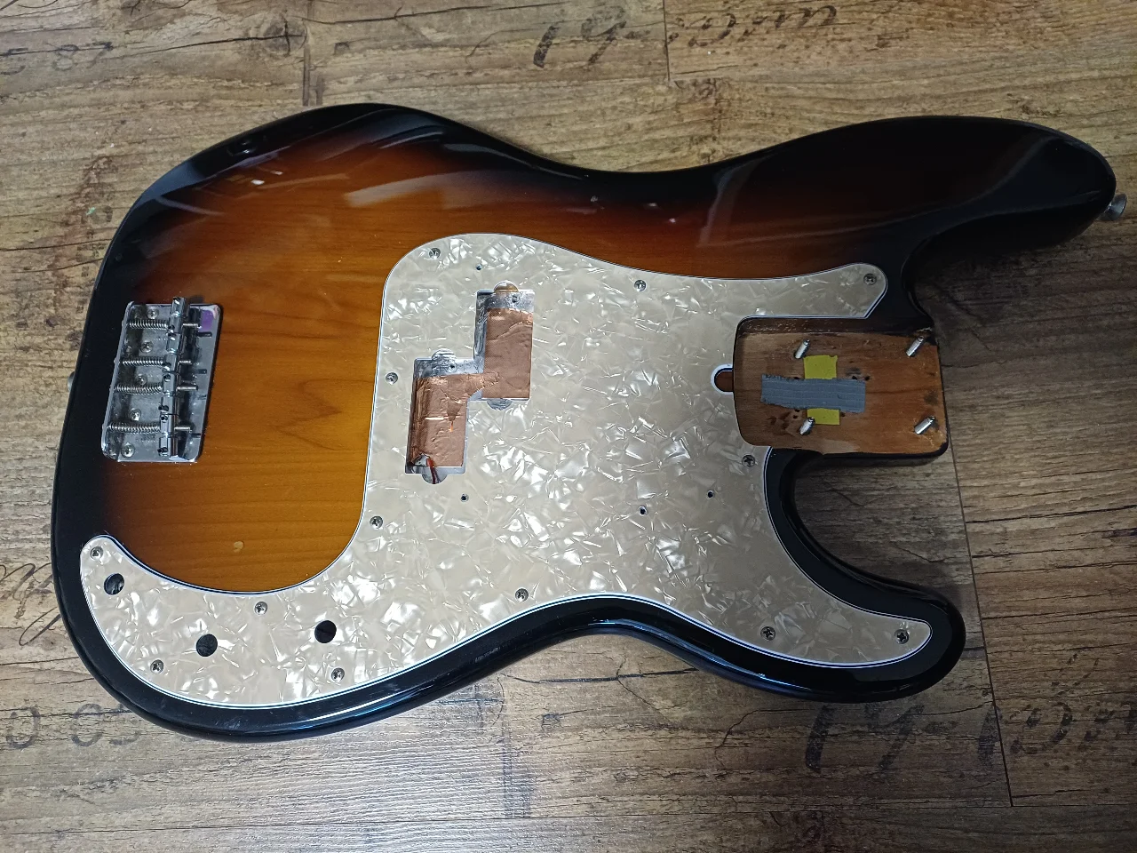 Biete einen Squier Preci Body eines Cina / Taiwan Made Basses von 1997 (siehe Seriennummer) in gutem Zustand an. Kommt mit Vintage Pearl Pickguard