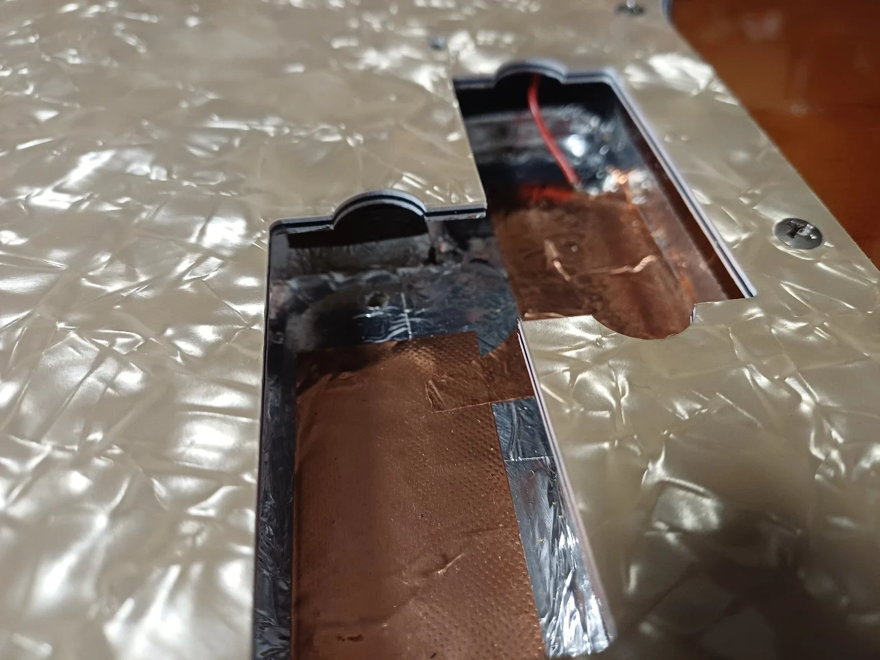 Der Body wurde mit Alufolie und Kupferfolie ausgekleidet gegen Einstreuungen. Fragen gerne stellen. Gängige Fender /Squier Hälse passen sicher, Halstasche ca 63,6 mm