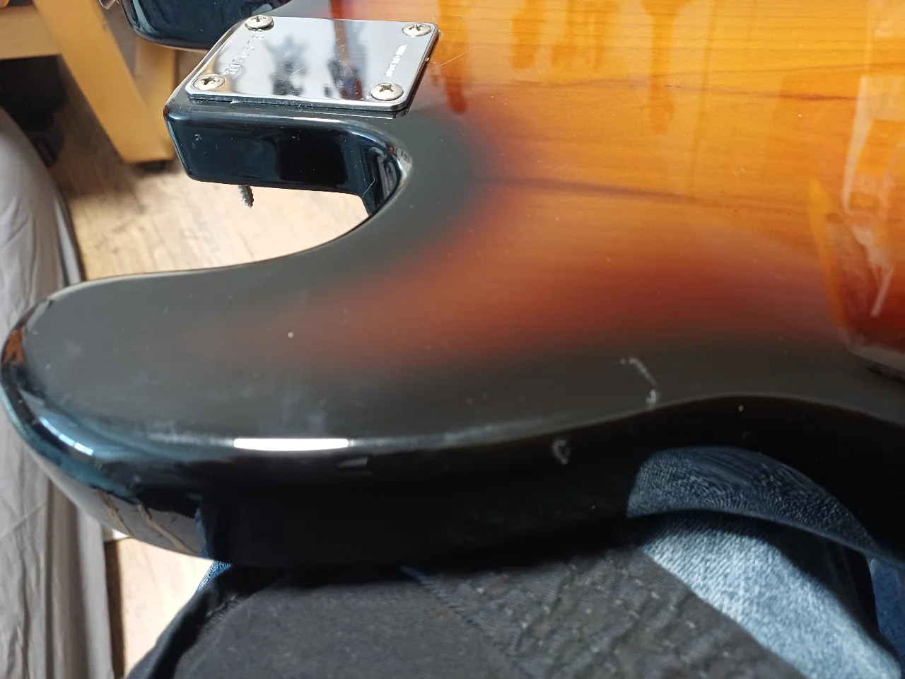 Gebrauchsspuren halten sich im Rahmen sind aber normal bei einem fast 30 Jahre alten Bass in Gebrauch. Gewicht des ganzen Basses lag ca bei 3,9 kg.