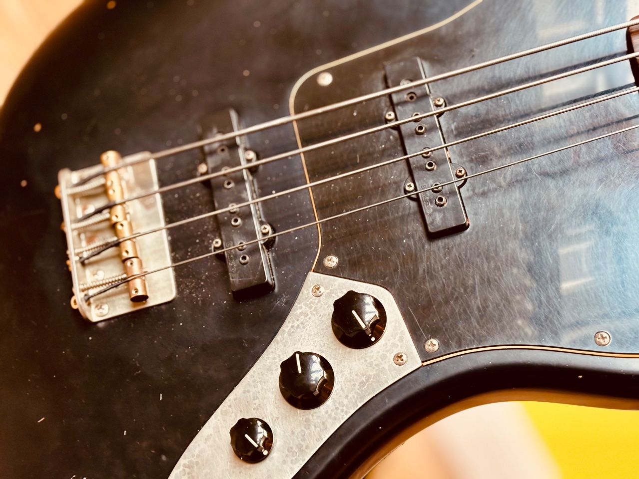 Der Bass ist ein Squier Custom Vintage mit 32“-Mensur. Er wurde von Restauracja Gitar mit einer - wie ich finde sehr gut gelungenen - Nitrolackierung mit leichtem Relic versehen. Die Metallteile sind patiniert.