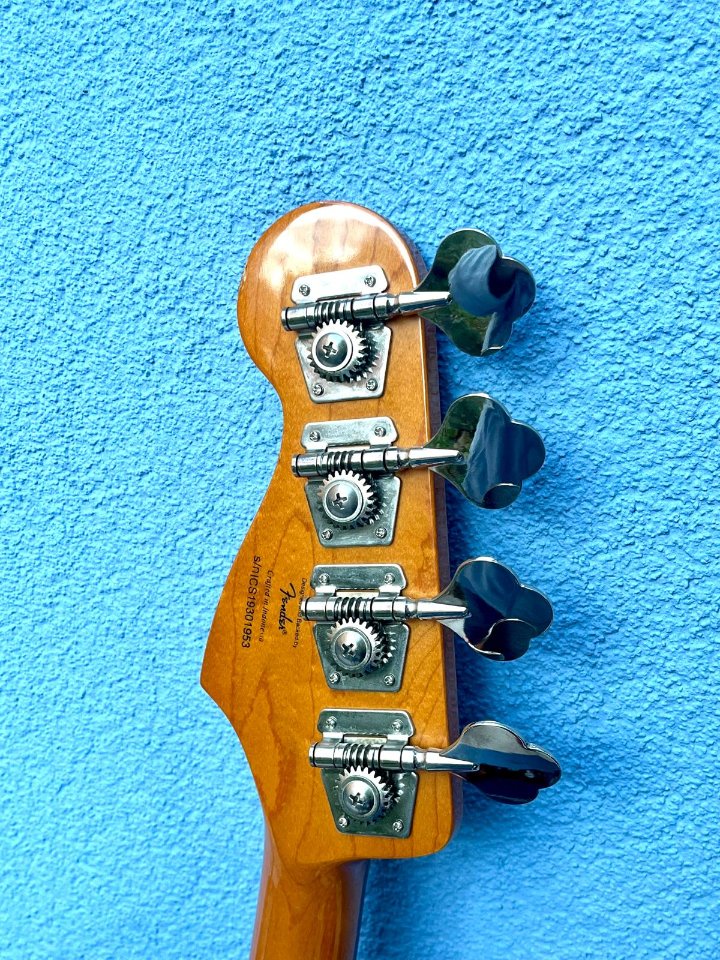 Halsbreite 38 mm, Gewicht 3,9 kg. Gekauft ca. 2018 weil der Hals einfach traumhaft gut ist. Allerdings hat sich dann ziemlich schnell herausgestellt, dass ich Prezis liebe, daher ist er nicht viel gespielt worden und in tadellosem Zustand. Die Bünde haben keinerlei Spielspuren. Aufgezogen sind Fender Flats.