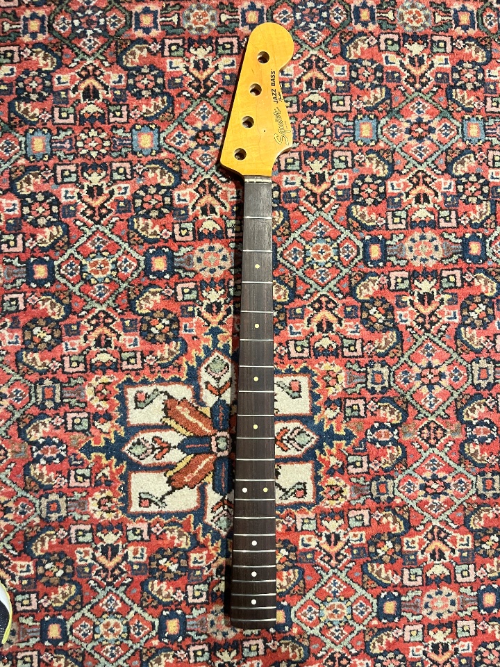 Über die JV Serie ,muss man nicht viel sagen – sind tolle Instrumente. Bei diesem Bass war der Hals verzogen. Als erste Maßnahme habe ich die Bünde so schleifen lassen, dass sich das ausgleicht. Das hatte Johannes Pöhlmann (Vincent Bassguitars) damals sehr gut gemacht. Wenn man – im Gegensatz zu mir – nicht auf sehr flache Saitenlage steht, ist das durchaus ein gangbarer Weg. Den Originalhals schicke ich auch gerne mit.
