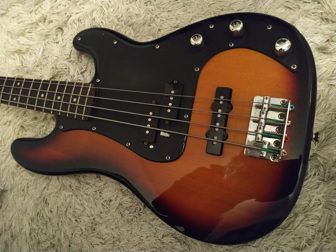 Gut erhaltener Squier Precision Bass Special. Special bedeutet in diesem Fall: Jazz Bass Pickup in der Stegposition und Jazz Bass Hals. Guter Allgemeinzustand und sofort spielbar. Eine größere Macke im Lack oberhalb des Stegs, außerdem weißt das Pickguard zwei Stellen auf, wo das schwarze Bakelit runter gespielt ist und der weisse Kunststoff durch scheint. Insgesamt schöne Patina. Bitte nur Selbstabholung oder Übergabe in Hamburg. Privatverkauf, keine Garantie, Gewährleistung oder Rücknahme.