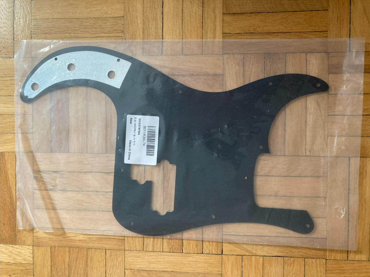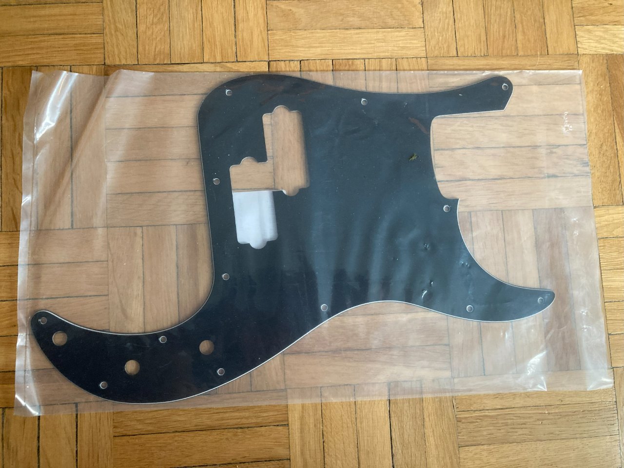 Die Farbe ist Schwarz mit einem dreilagiges Shell/Red Pickguard. Als Alternative gebe ich ein schwarzes dreilagiges Pickguard dazu (siehe Bilder).