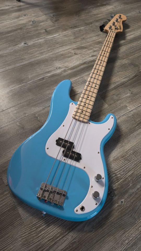 verkauft wird ein Fender Squier Sonic Precision Bass in der beliebten Farbe Miami Blue.