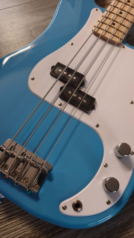 Sollte mein Proberaum Bass werden, was er auch gut hätte sein können, aber der Hals hat Jazz Bass Abmessungen (38mm) und ich präferiere jedoch den breiteren Preci-Hals.