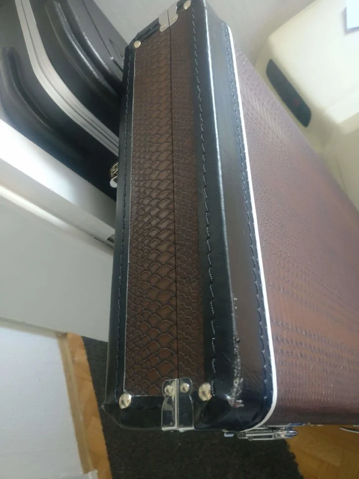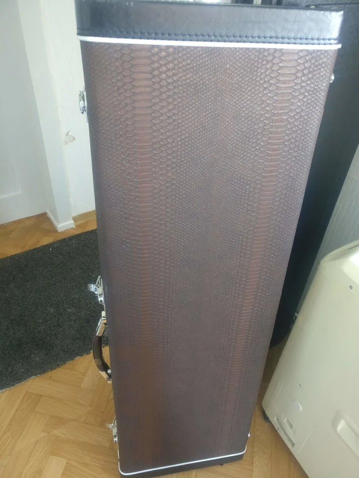 Zum Verkauf steht ein gebrauchter, aber technisch einwandfreier Basskoffer in Krokodilleder-Optik.