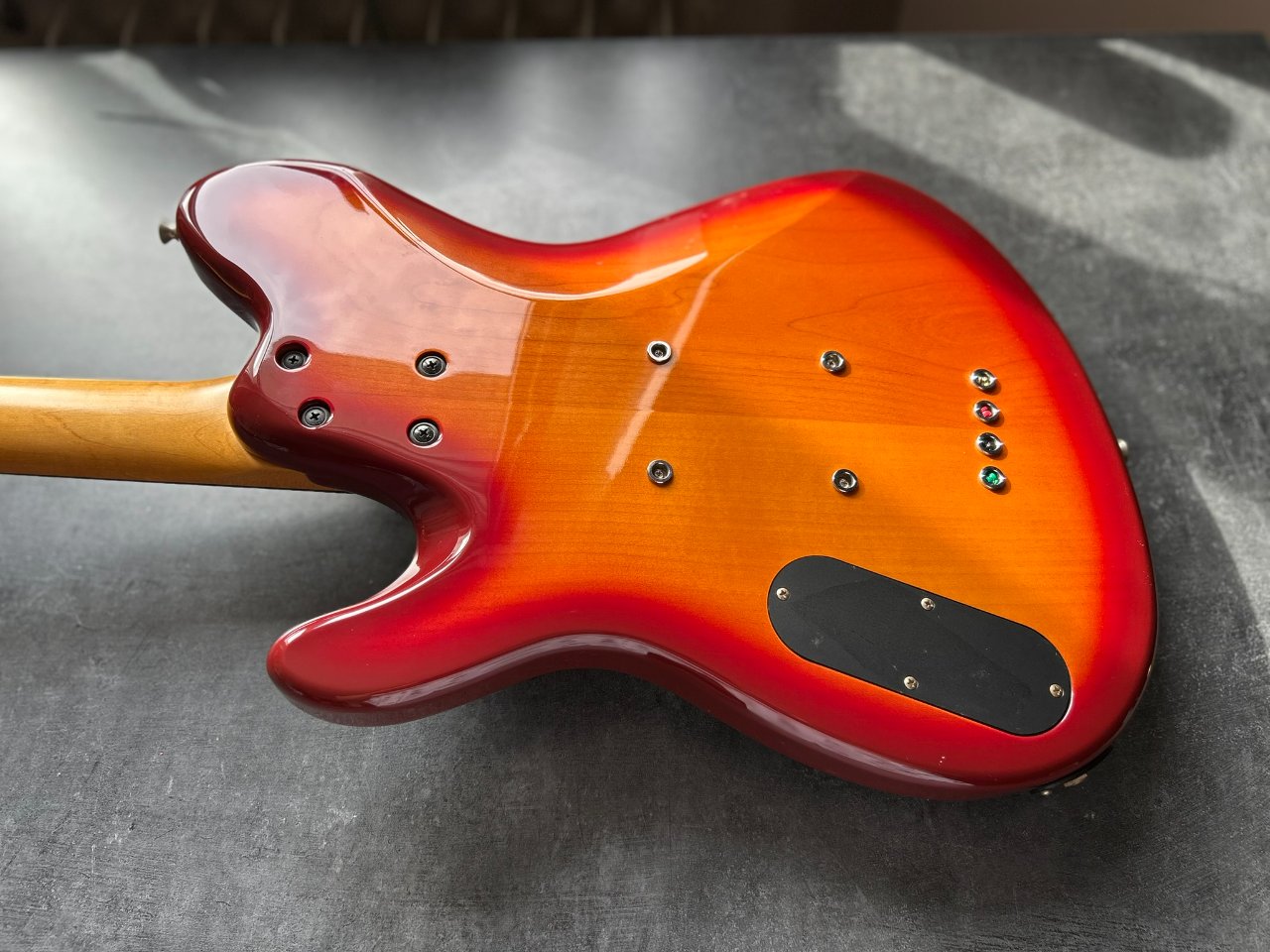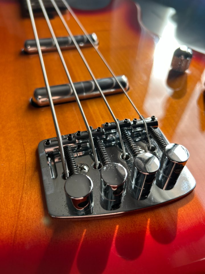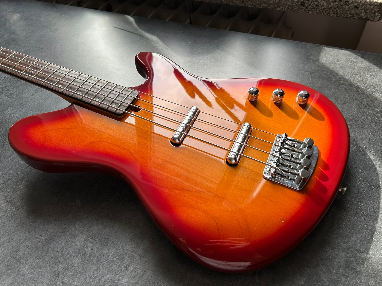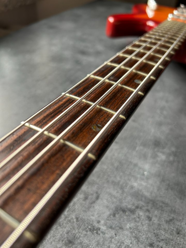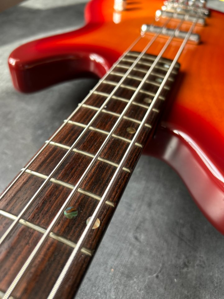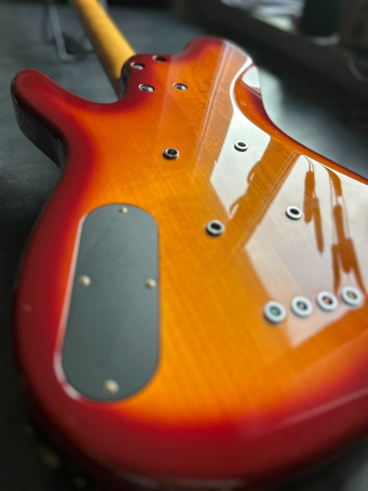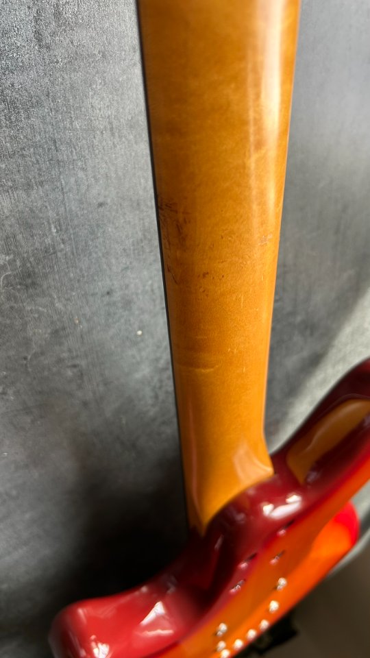 Wenn man bedenkt, dass der Bass bereits 32 Jahre alt ist, ist sein Zustand geradezu unglaublich. Ich habe auf dem gesamten Instrument buchstäblich zwei kleine Dellen im Lack gefunden, ansonsten glänzt die Gitarre wie neu.
