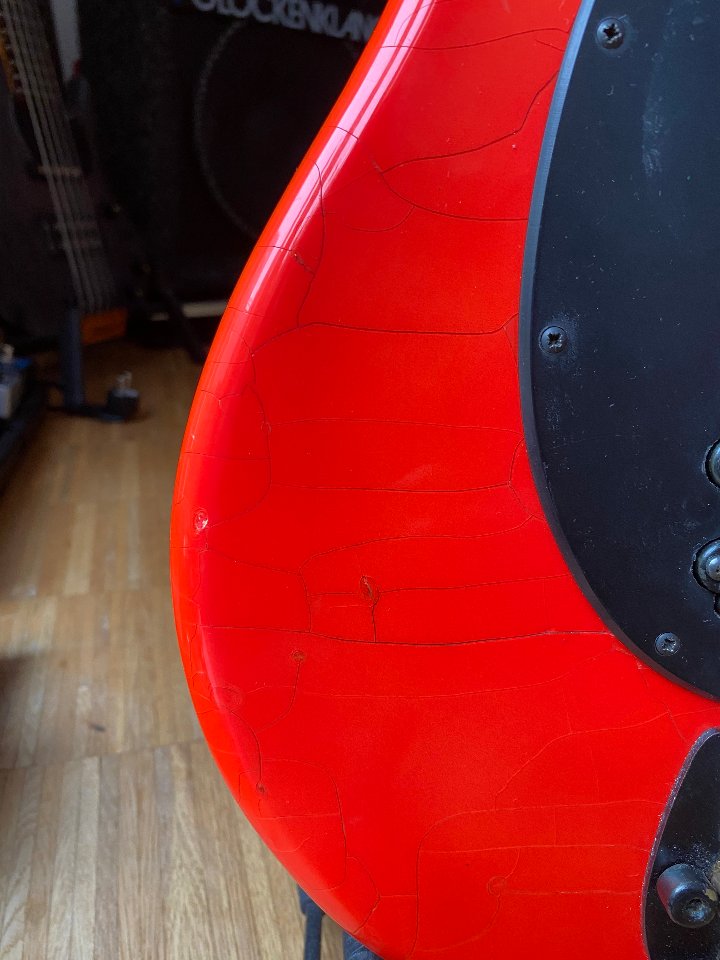 Bei Versand kommt er in einem alten Case, das, passend zum Bass, aussieht als sei es schon 3-mal um die Welt getourt.