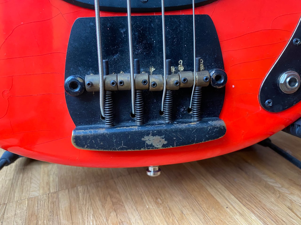 Die Verankerung der String-Through Bridge (sehr massiv) wurde ebenfalls beim Gitarrenbauer instandgesetzt, da war ein Bolzen leicht lose.