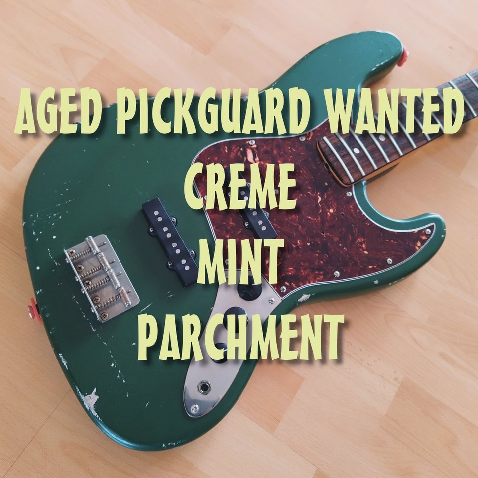 Ihr lieben, ich suche ein helles Pickguard für meinen grünen Jazz Bass. Also Creme, Mint oder Parchment. Es sollte schon einen gewissen Grad an relic haben, da es sonst ja nicht zum Bass passt. Muss nicht zwingend 11-Loch sein, 10 tuen es auch!