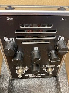 Klangregelung: klassische, passive 3-Band-Klangregelung, Bass-Mid-High-Reglern (HI always ON, Bass mittels Fußschalter schaltbar)