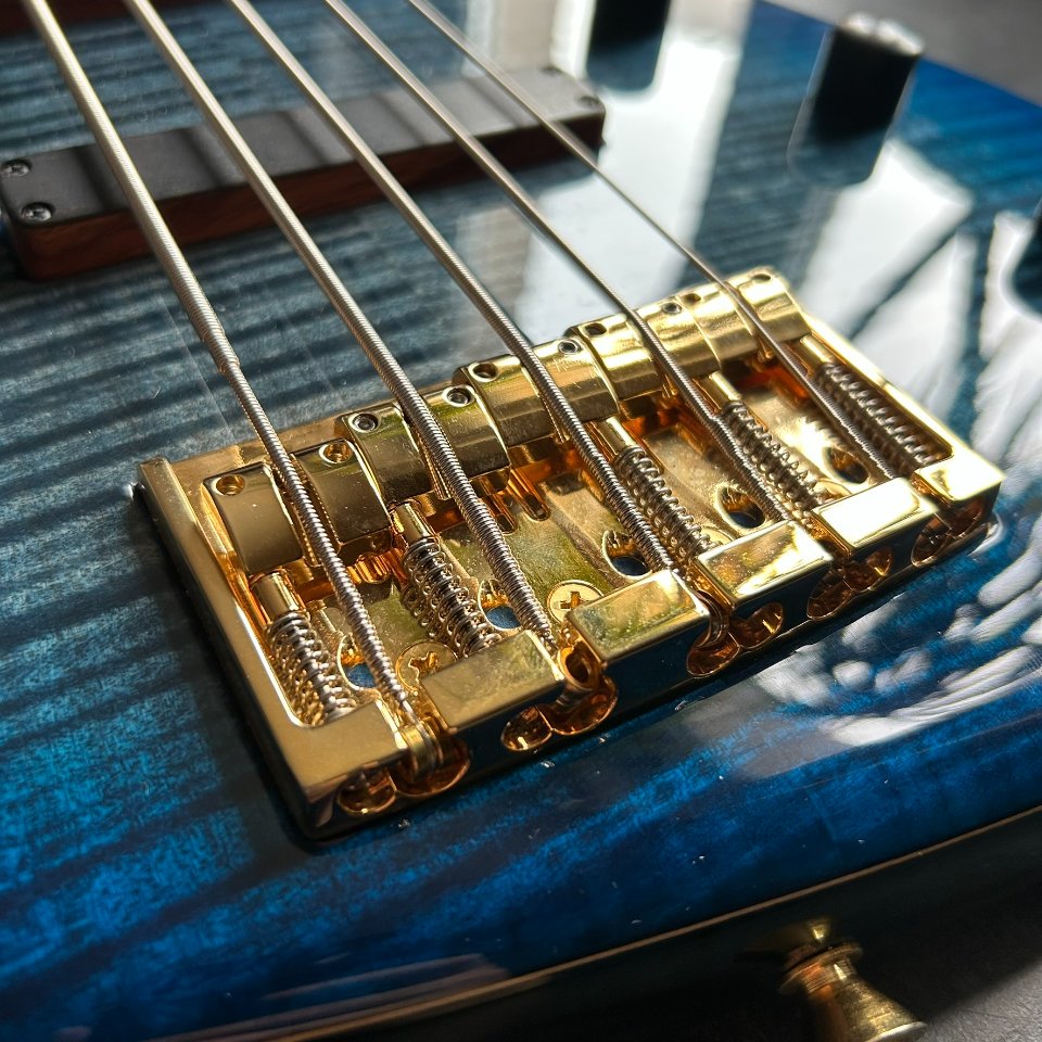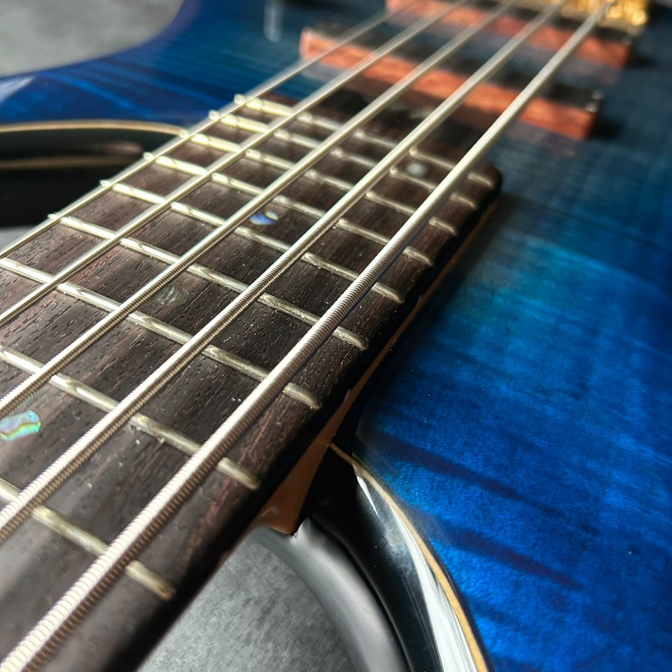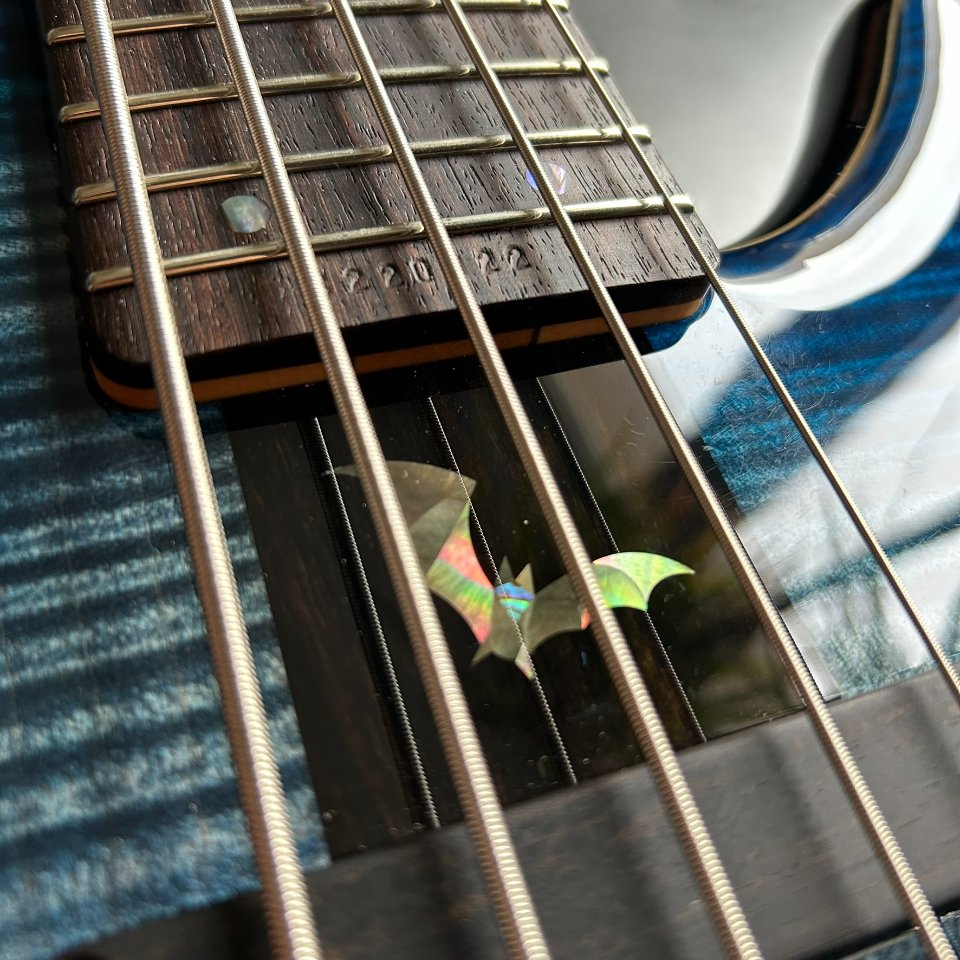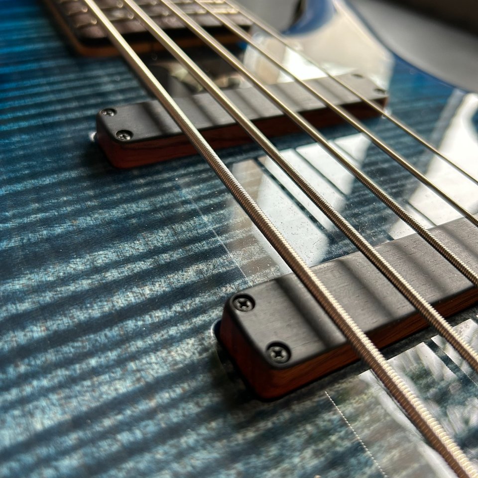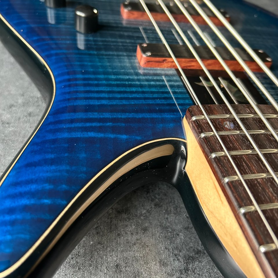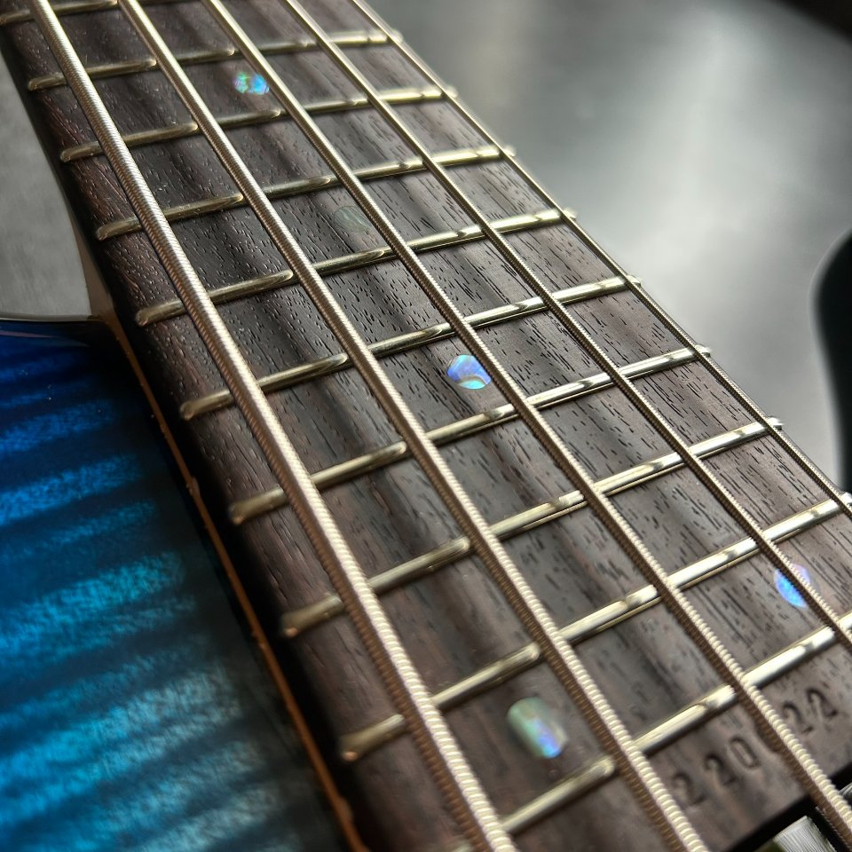 Top: Flame maple, 5A, blue burst, with tri-layer ebony and maple accents.