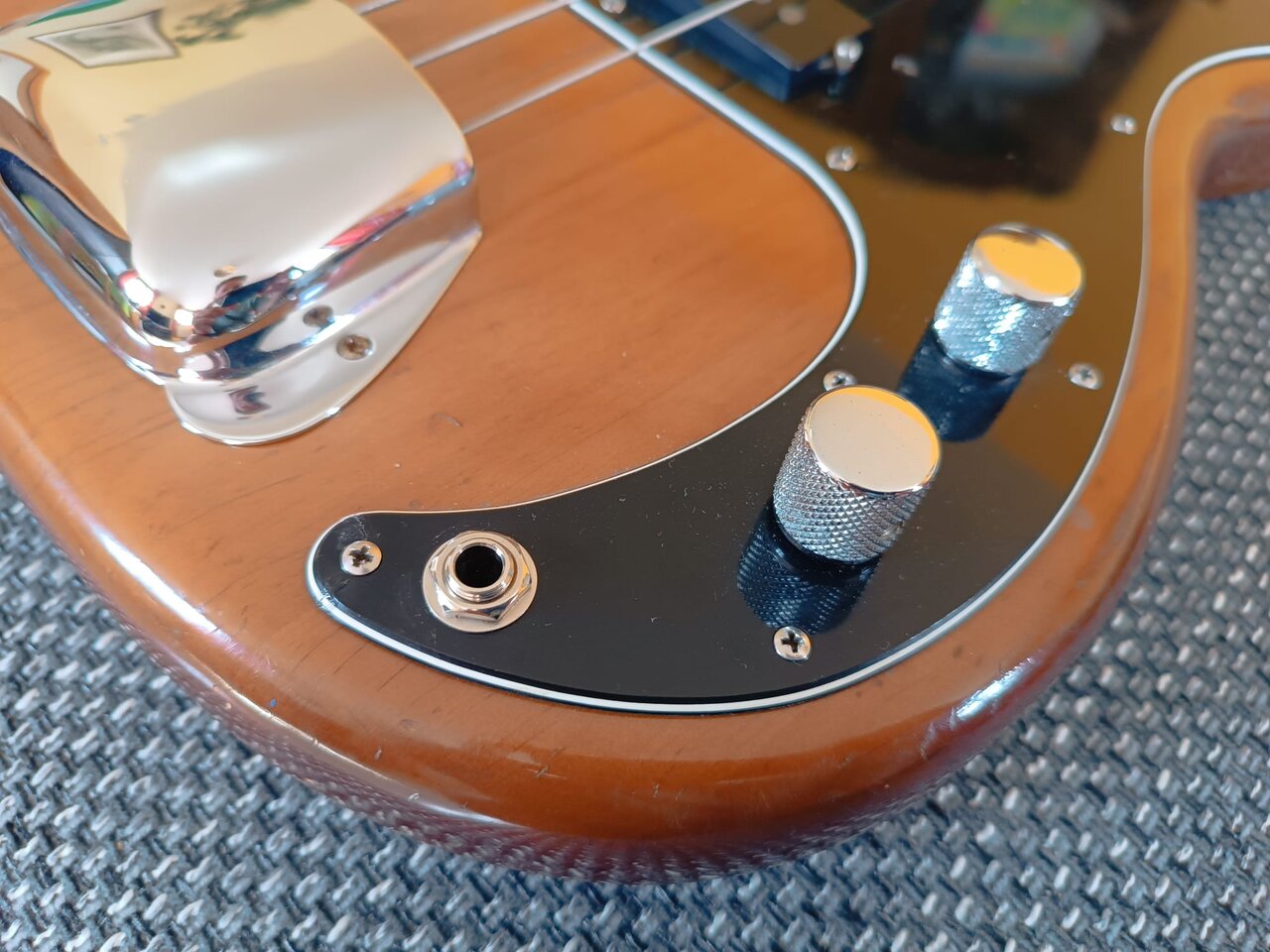 Ein Stück vom Pickguard an der Buchse war gebrochen und wurde geklebt.