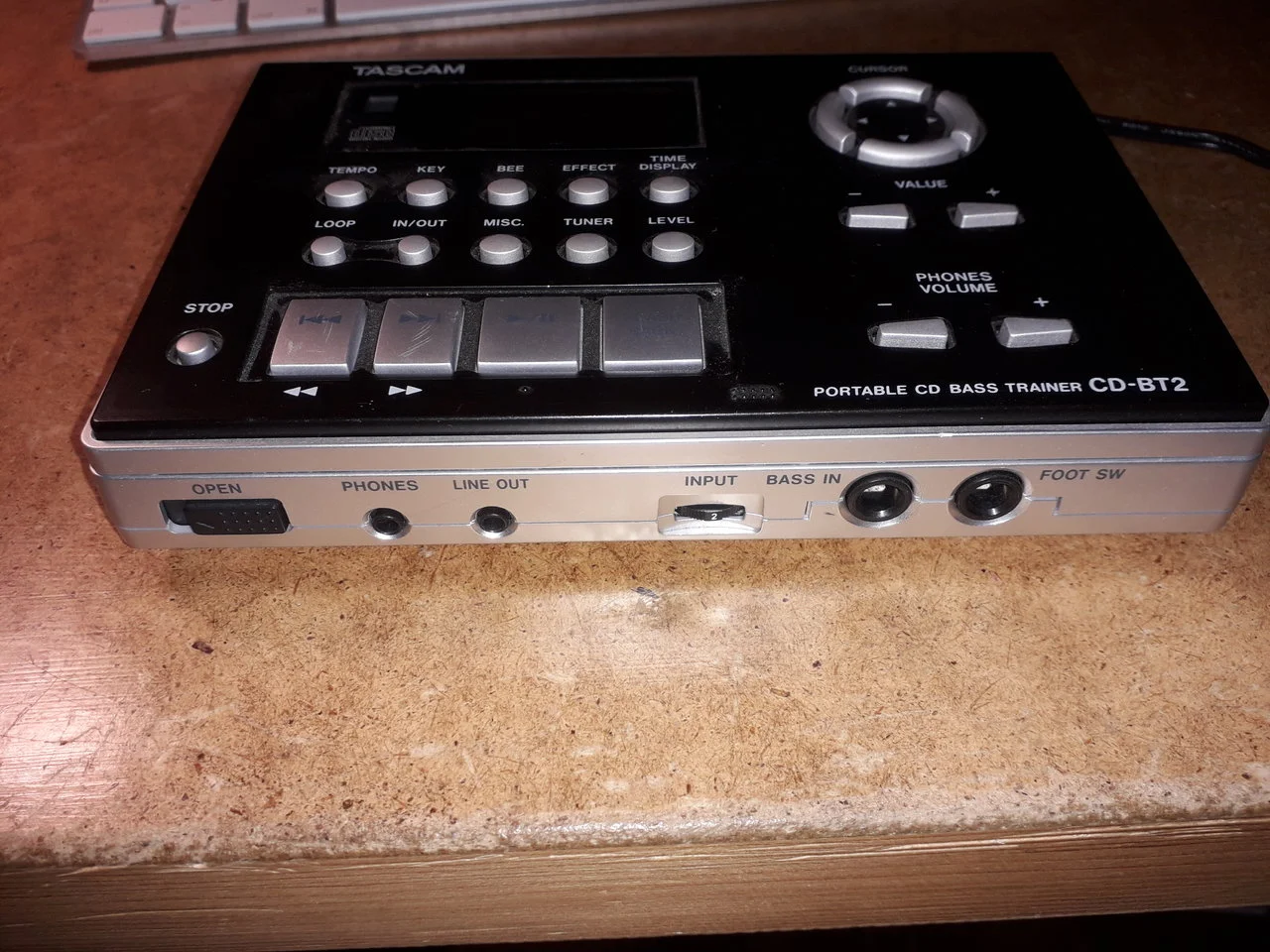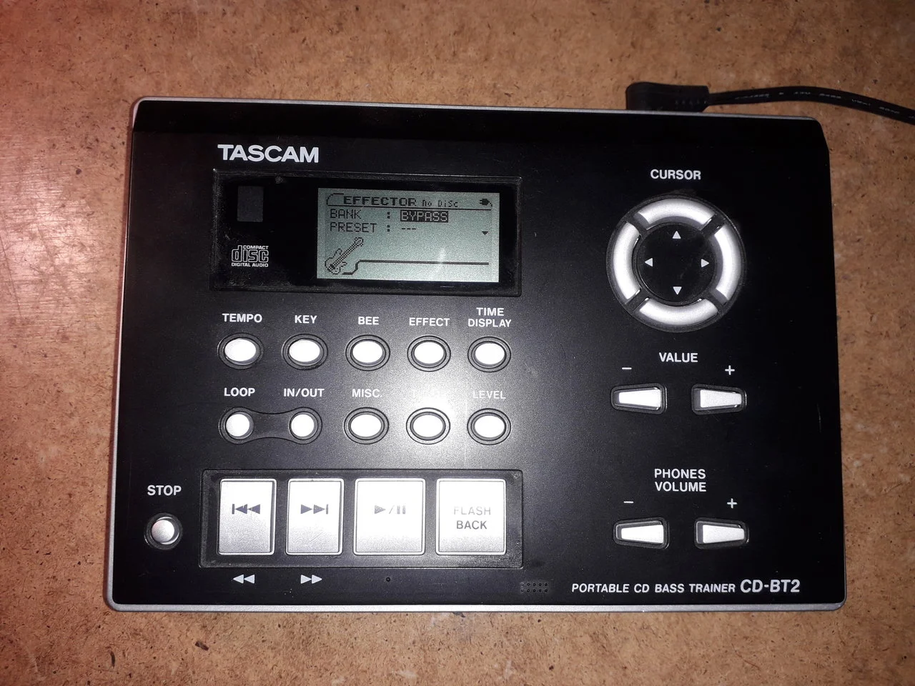 Zum CDs langsamer abspielen. Tracking wie üblich bei dieser Art Gerät. Viele Funktionen wie Key-change, Effektweg, Loop, Tuner etc. Netzteil mit dabei.