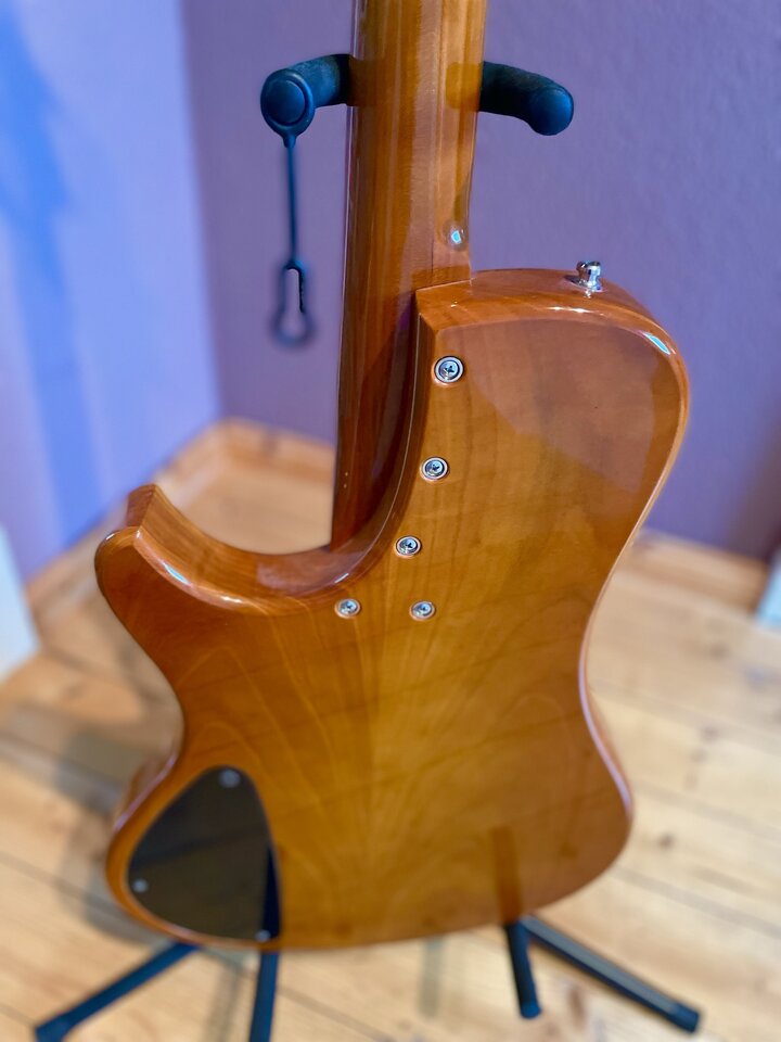 Ich bin super zufrieden damit aber durch einen absoluten Zufall habe ich kurz nach Fertigstellung meines Basses einen zweiten Room II aus Kirsche (den aus dem Magazin, den ich quasi 9 Jahre lang angehimmelt habe) erwerben können und zwei davon zu besitzen,… das ist einfach zuviel des Guten.