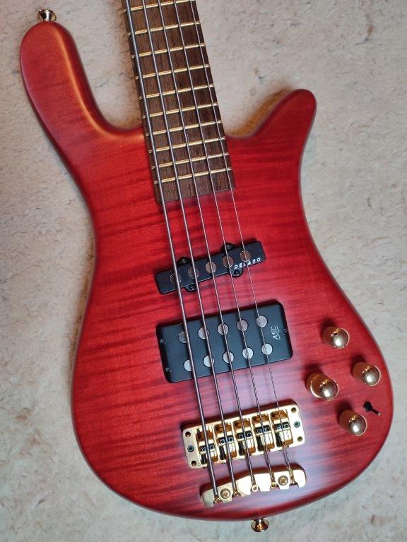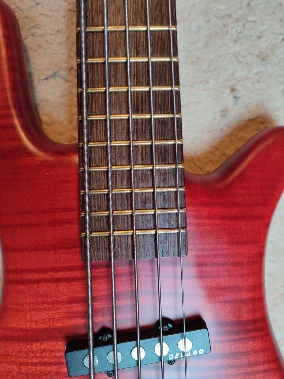 Ich habe den Neckpickup durch einen Delano- JMVC 5 FE/M2 mit Brummunterdrückung ersetzt (der originale MEC single-coil ist aber vorhanden) und die defekte nicht abschaltbare aktive originale Klangeregelung (Seymour Duncan mit slap-switch) durch eine Noll-3-Band-Regelung ersetzt ohne verändernde Holzarbeiten. Der defekte Mini-switch wurde durch einen knackfreien Noll-Schalter mit breitem Knebel ersetzt. Der pickup-Tausch und die schaltbare Klangregelung werten den sound ungemein auf und bieten per Push-pull-poti eine zusätzliche aktive Option, der Bass ist eben jetzt auch passiv spielbar. Der sound und die Klangmöglichkeiten sind absolut gut und variabel, aber mir ist das spacing zu eng, weil ich inzwischen auch parallel 4-Saiter spiele und die Sandbergs 18mm spacing haben.