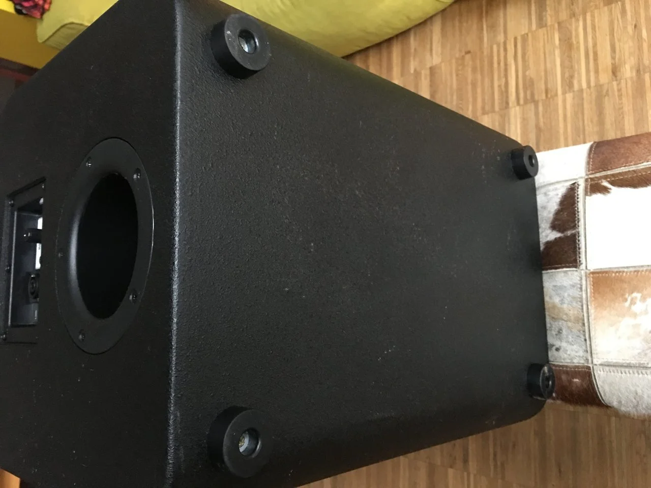 Unten an jede Box habe ich gummifüße geschraubt, dann steht
