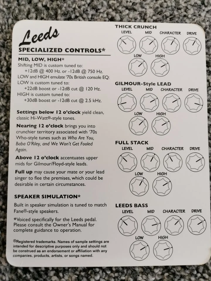 Edit: Beim Durchchecken des Pedals ist mir aufgefallen, dass einer der Pole der Batterieklemme etwas oxidiert ist. Weitere Spuren einer Batterie die schlapp gemacht hat, konnte ich nicht entdecken. Ich selber habe das Leeds immer nur am Netzteil betrieben. Den Preis habe ich aufgrund der Klemme von 150 auf 135 EUR gesenkt.