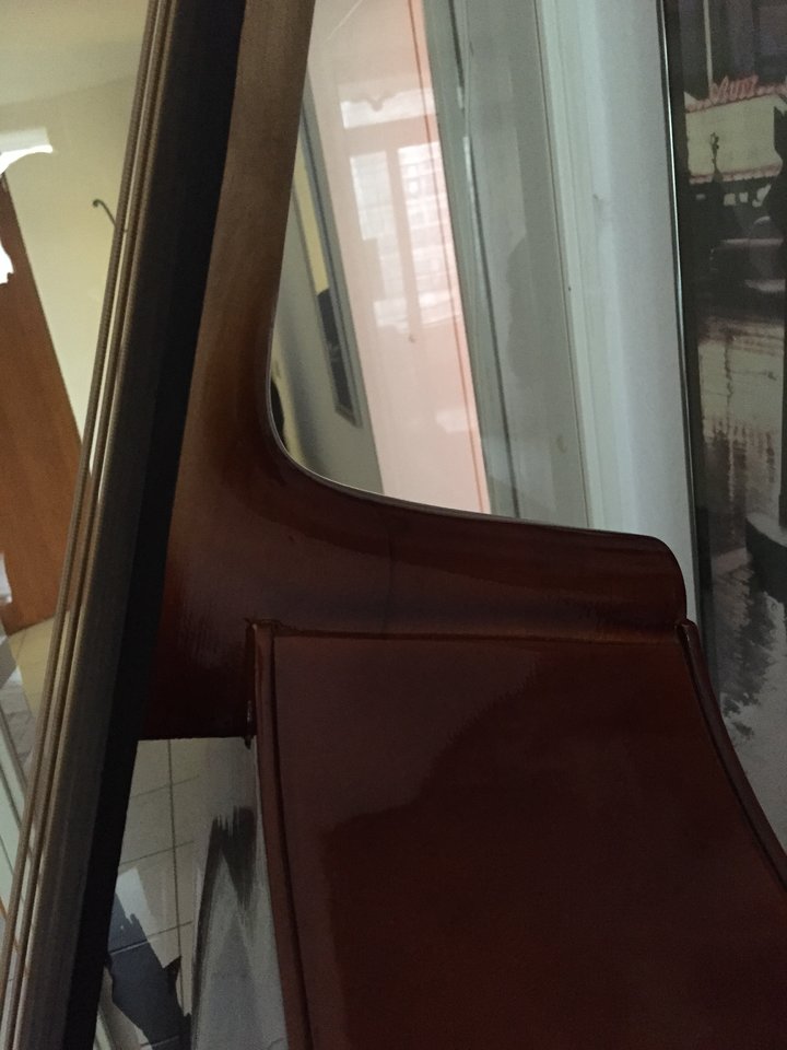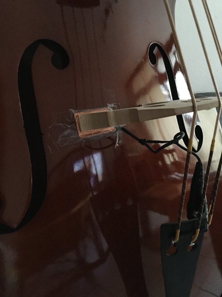 Im Dezember 2014 gekauft und beim Geigenbauer Uphoff in Mannheim eingestellt. Meister Uphoff hat das Griffbrett abgerichtet und den Saitenhalter angepasst. Man kann gut Zupfen und auch Slappen.