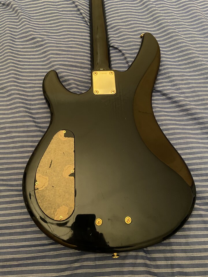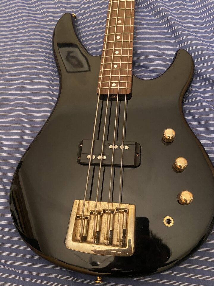Der Bass ist passiv und hat 2 Tonregler (Höhen und Bässe), der Sound hat Stingray-Charakteristik auf Grund der MusicMan Pick Up Position.