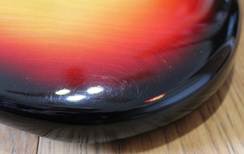 Die Bünde zeigen in der Moneymaker Zone (erste 4 Bünde) Abnützungserscheinungen, die beim spielen nicht stören, könnte man polieren.