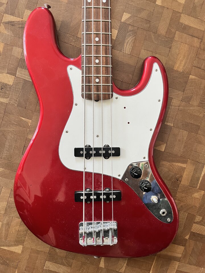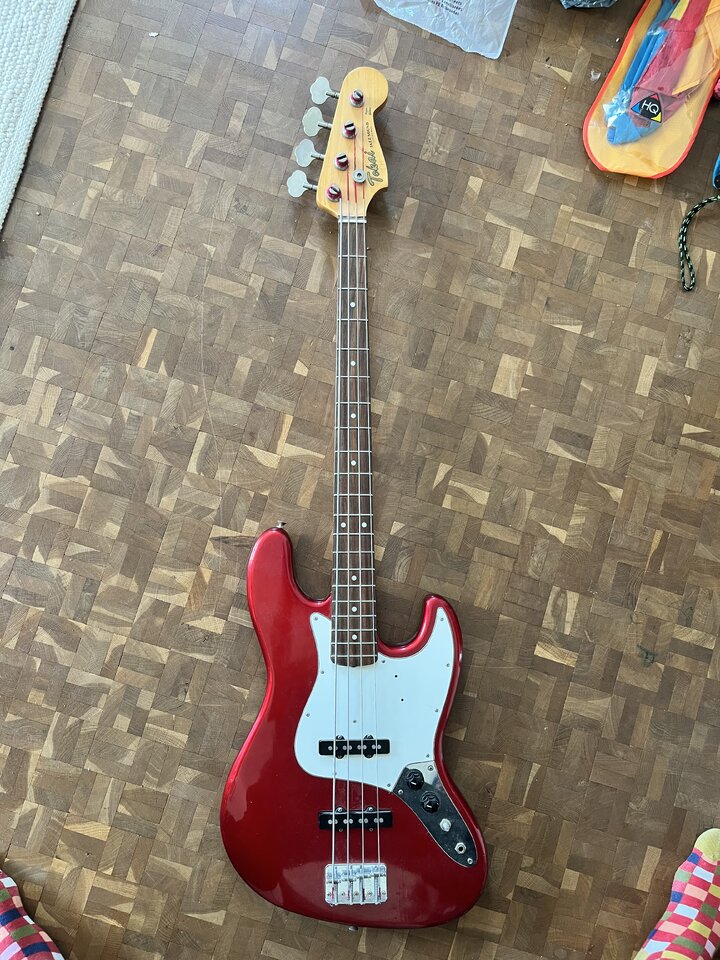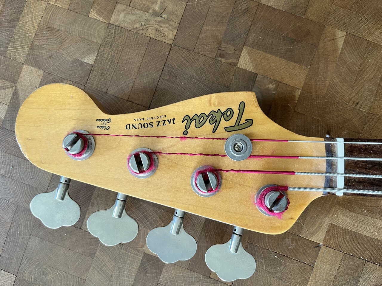 Daher darf dieser schöne Jazz Bass weiterziehen: traumhaft bespielbarer Tokai Jazzi, nach Seriennummer / Logo aus 81 oder 82, grey-Pickups, - wer die frühen Tokai kennt, weiß, dass sie keinen Vergleich zu bspw Squier JV zu scheuen brauchen.