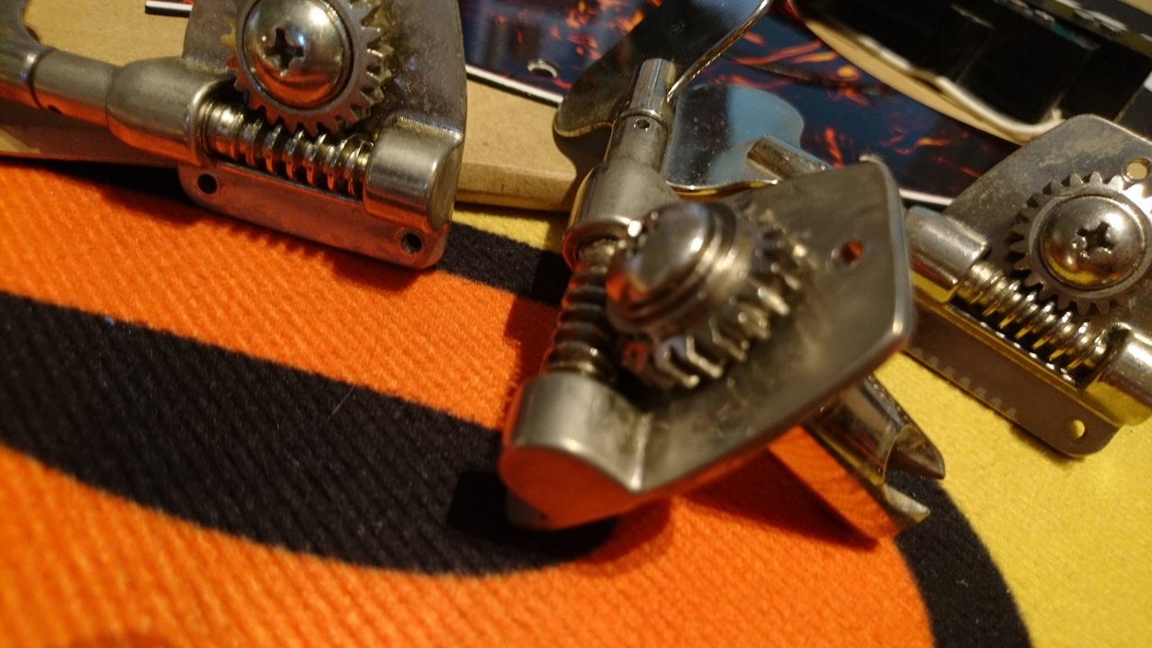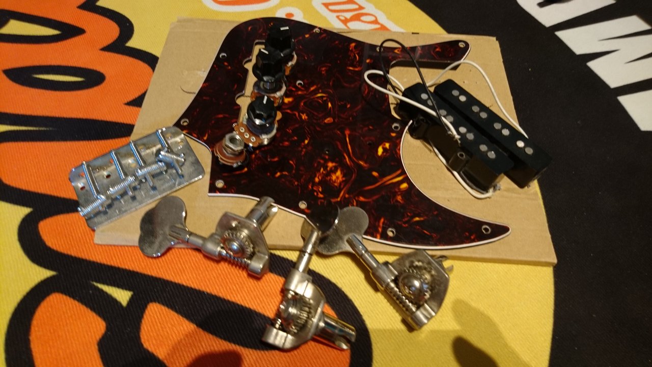 Original Bridge, Tuner, Pickups(richtig gut!), Elektronik, Knobs (Control Plate finde ich vielleicht auch noch) Pickguard.