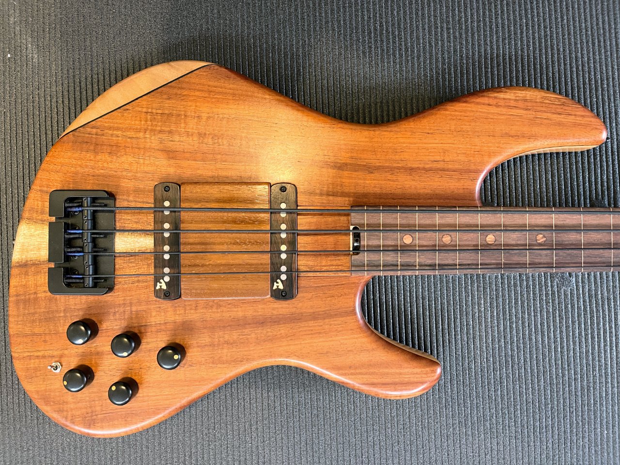 Hardware: Hipshot & Gotoh, schwarz, Brücke: 19mm Spacing.