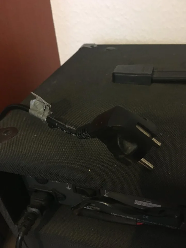 etwas Staub angesetzt und an der Seite verabschiedet sich ein kleines bisschen von der Verkleidung. Außerdem ist am Stecker ein kleines bisschen Panzertape festgeklebt, aber ich vermute