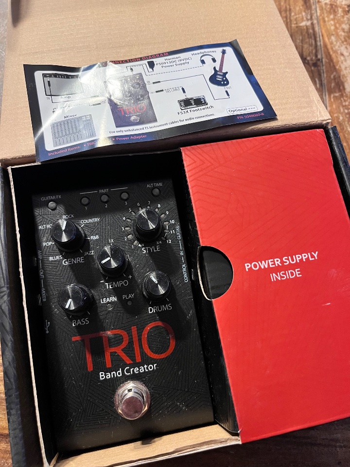 Trio Bandcreator. Kreiert Drum- und Bassbegleitung. Perfekt für Wohnzimmer-Gitarristen. Es soll ja auch Bassisten geben, die gerne Gitarre spielen. Mit dem Trio Gerät, hast du deine Rhythmussektion immer in der Tasche bei Dir.