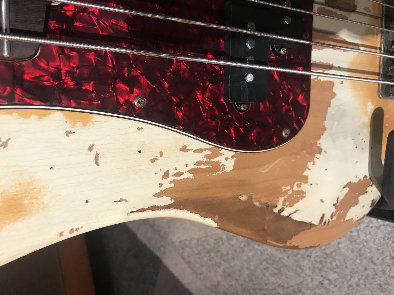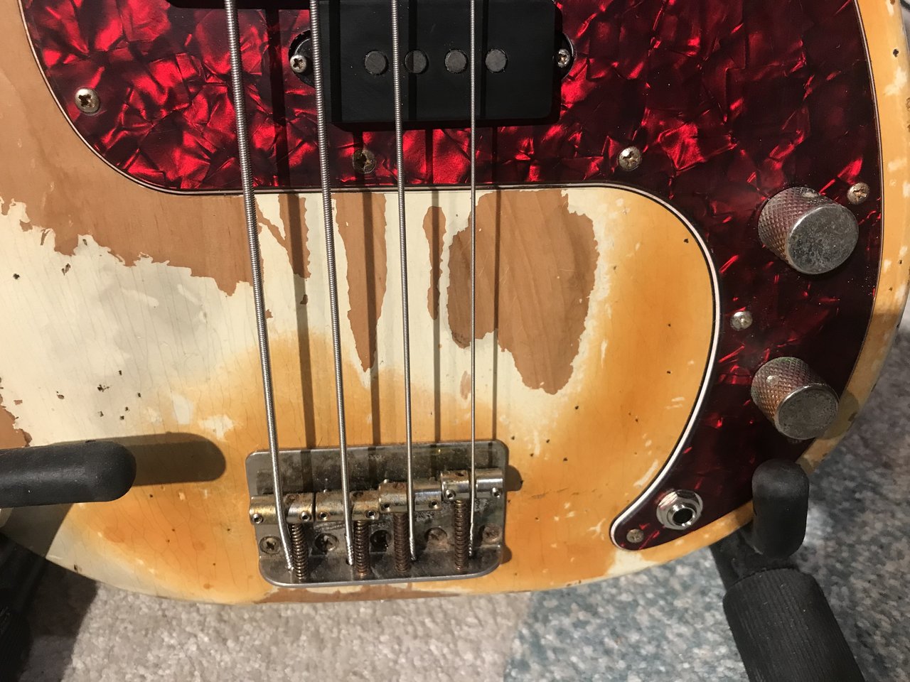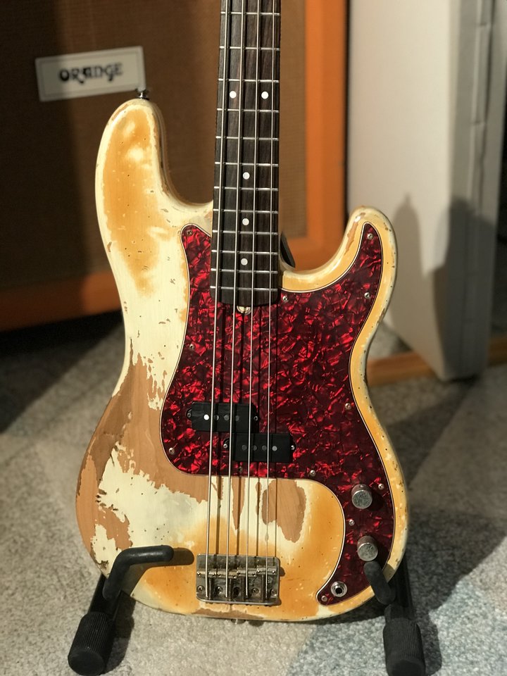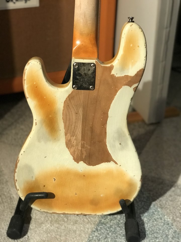 Dieser Bass ist sehr aufwändig geaged, Korpus, Hals, Hardware. Aged Nitro Lack mit wunderschönen Lackrissen.