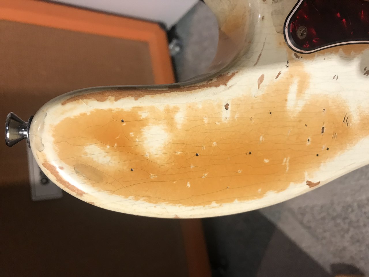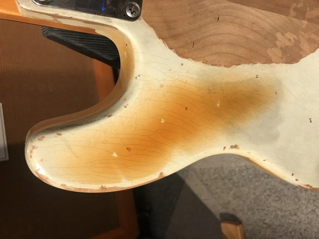 Tinted nitro finish, weather checked.