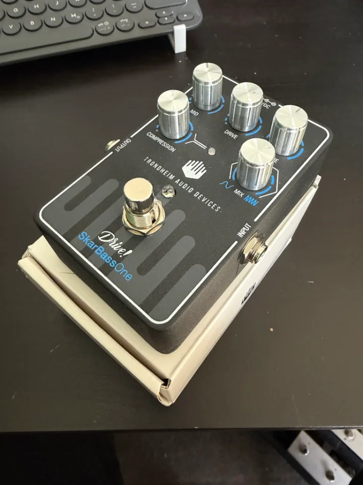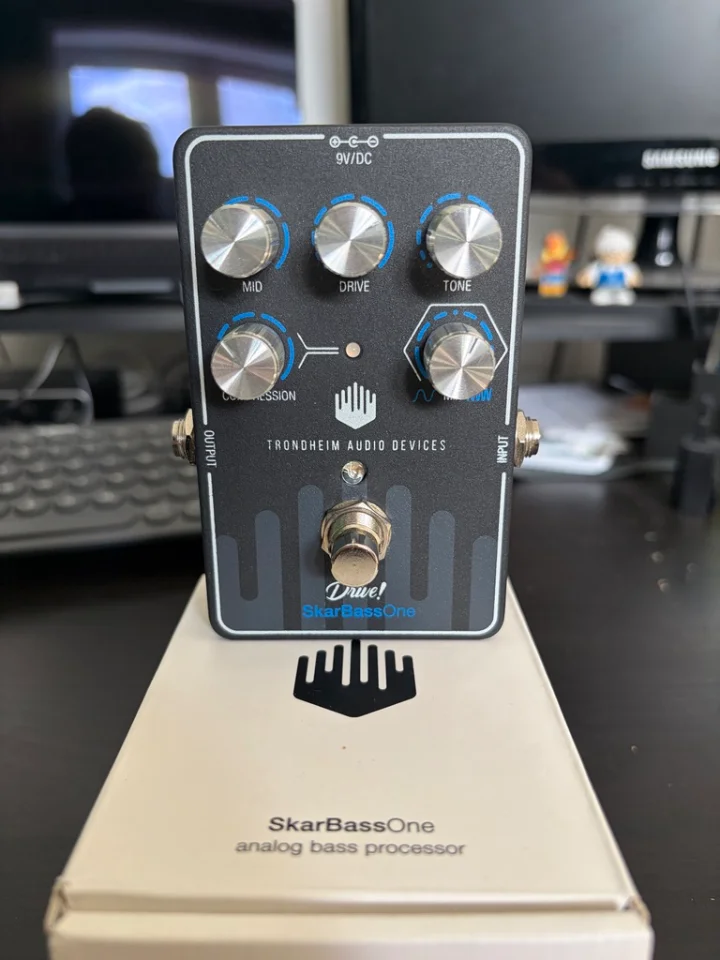 Der in Norwegen entwickelte SkarBassOne von Trondheim Audio Devices ist ein komplettes Effektpedal (Kompressor und Overdrive) für Bassgitarre. Das Pedal ist so konzipiert, dass es direkt an einen Verstärker, ein Interface oder eine DI-Box angeschlossen werden kann.