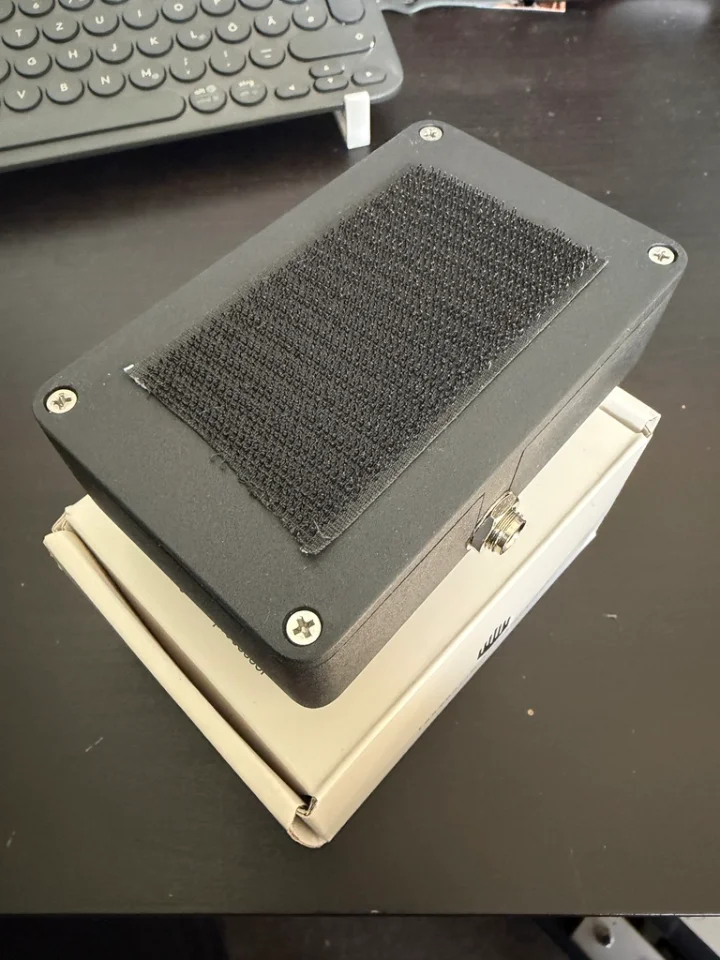 Mit dem Fußschalter lässt sich der Multiband-Drive des Pedals aktivieren/deaktivieren. So kann man von einer milden Verzerrung zu einem heftigen Overdrive übergehen, der im Gegensatz zu herkömmlichen Overdrives die tiefen Grundfrequenzen des Signals nicht angreift.