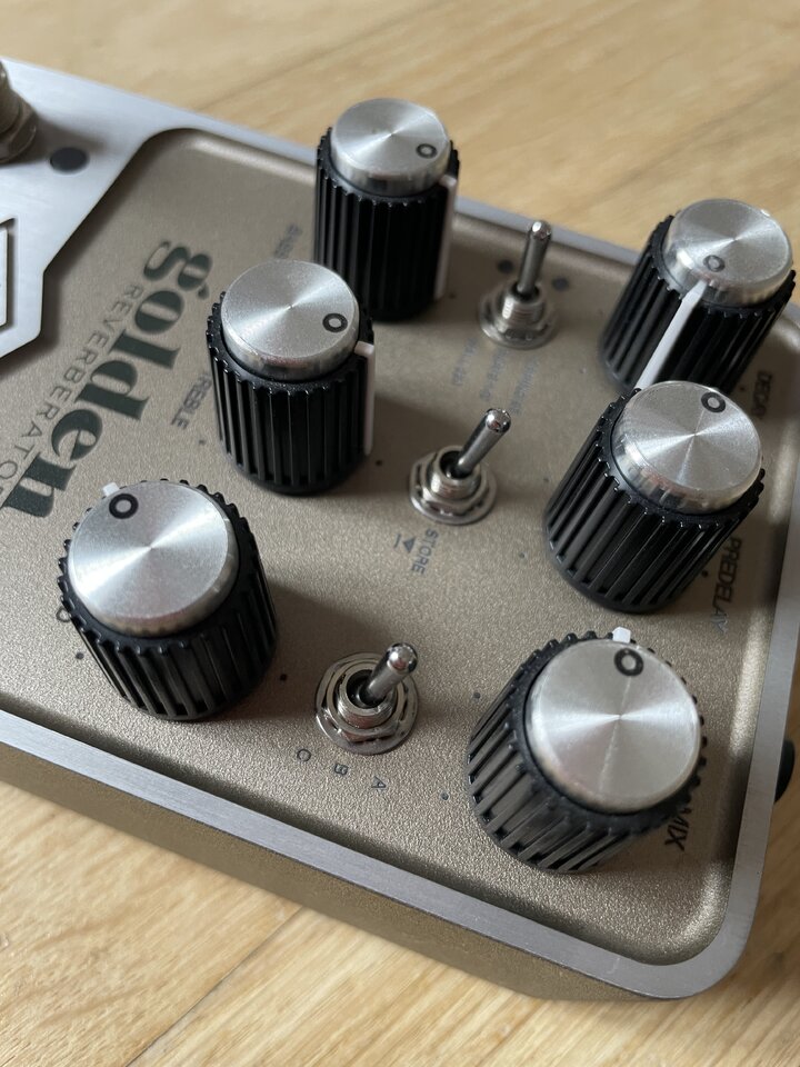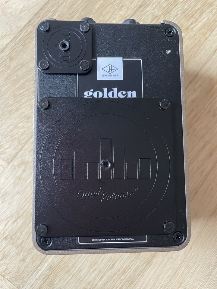 Ich verkaufe einen gebrauchten Golden Reverberator Reverb von Universal Audio. Dieses Pedal simuliert verschiedene Vintage und Studio Reverbs in einer Qualität, die man so nur bei UA finden kann. Qualitativ ist das ist absolute Oberklasse! Auf der Unterseite des Pedals sind Temple Audio Pedal Plates, da ich das Pedal eine Weile auf meinen Studioboard hatte. Die lassen sich ggf. natürlich leicht wieder entfernen.