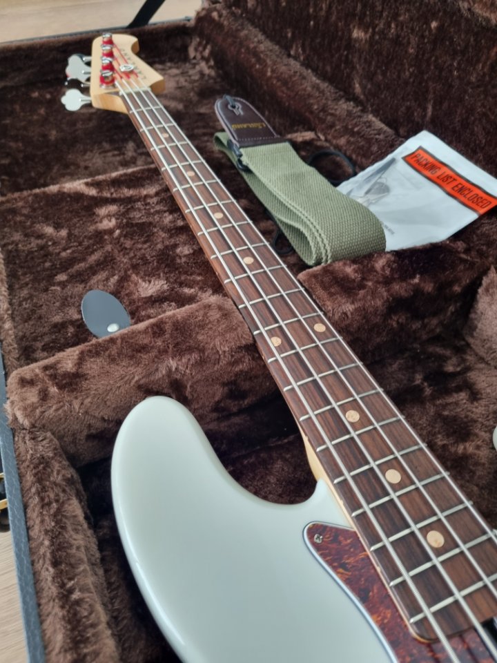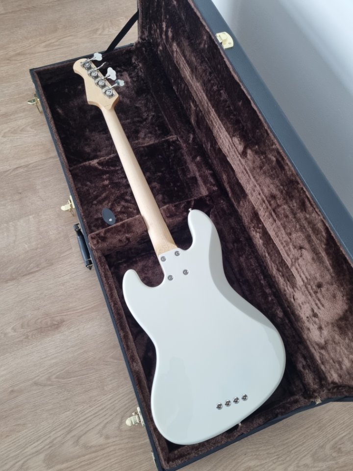 Four-string bass guitar of the classic early 60's jazz bass concept, which was completely made in Chicago USA, with passive electronics and Lakland Vintage Hot J4 single-coil pickups. A hard case is included.