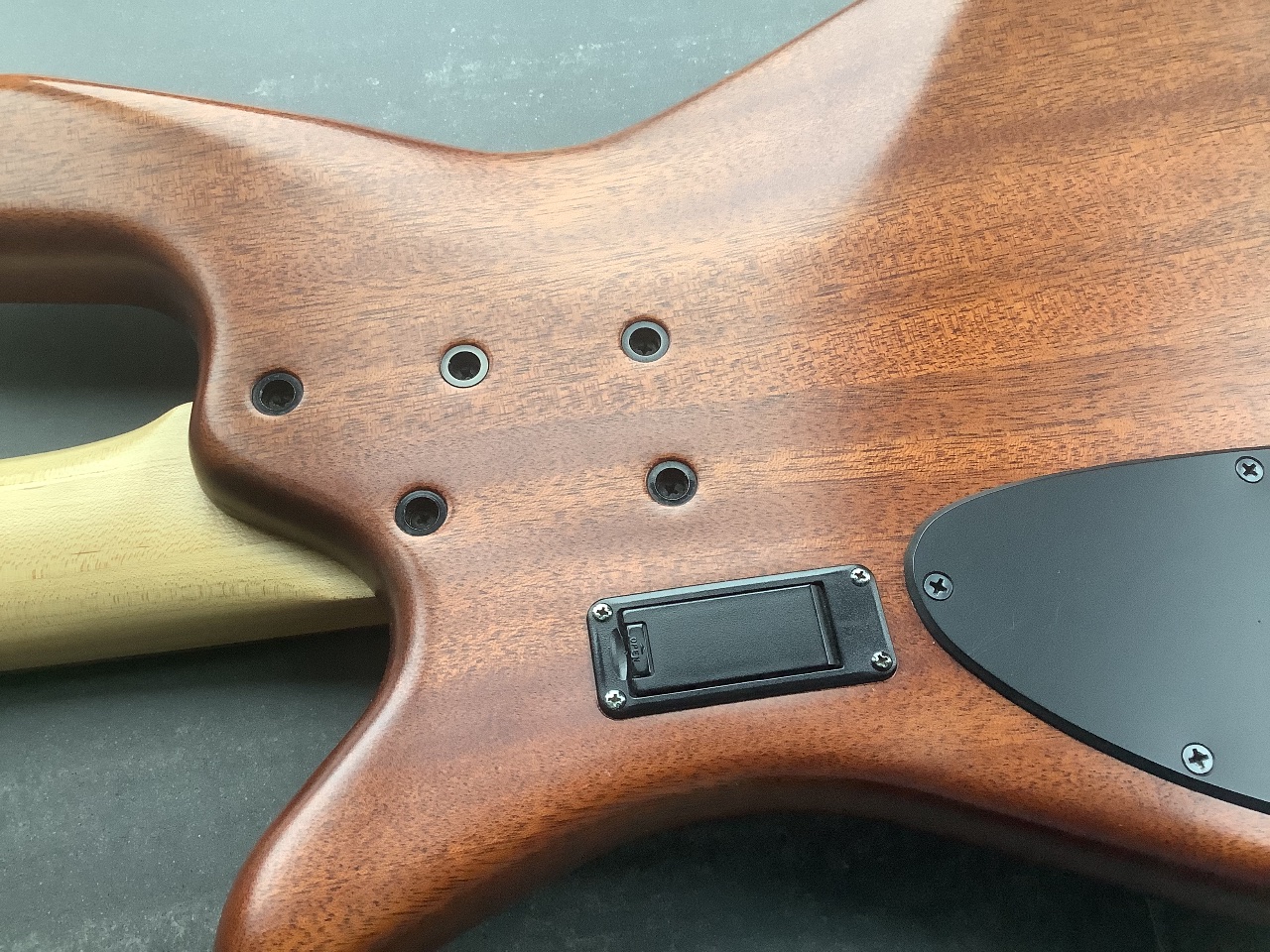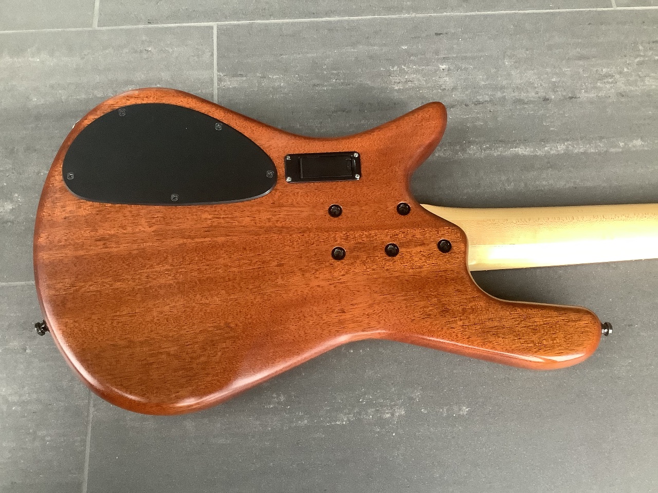 Anders als der klassische NS-2 ist dieser Bass mit 2 J-Pickups bestückt. Auch die bolt-on Konstruktion und der Korpus aus Mahagoni mit Edelholzdecke unterscheiden diesen Bass.