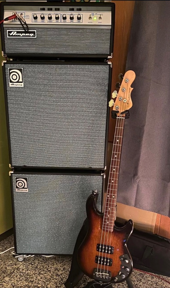 Er besteht aus einem SVT VR 300W -> im Prinzip gleich mit dem vom Ampeg derzeit angebotenen "Heritage", halt nur nicht "Made in USA" und deswegen war er günstiger zu bekommen (NP 2.800)