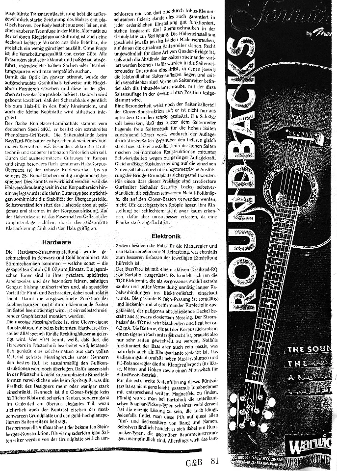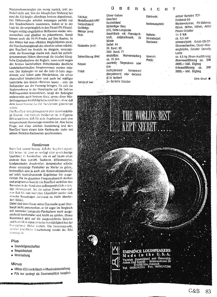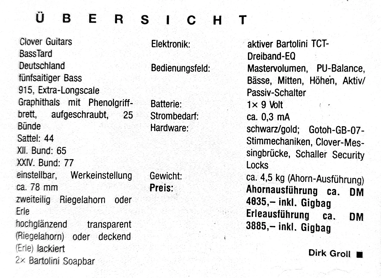Es geht um einen schönen & sehr selten angebotenen fünfsaiter Custom *Made in Germany* Clover E-Bass,
