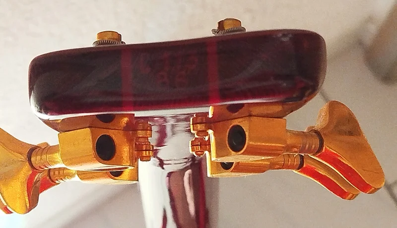 Die Messingbünden sind noch super gut bespielbar! Er klingt fantastisch, hat eine sehr gute Saitenlage. Was ich nicht unerwähnt lassen möchte,