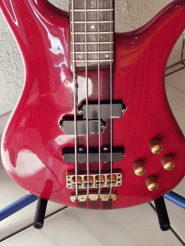 Der Bass hat EMG-Pickup und stammt aus der wohl goldenen Ära der Warwick-Bässe.