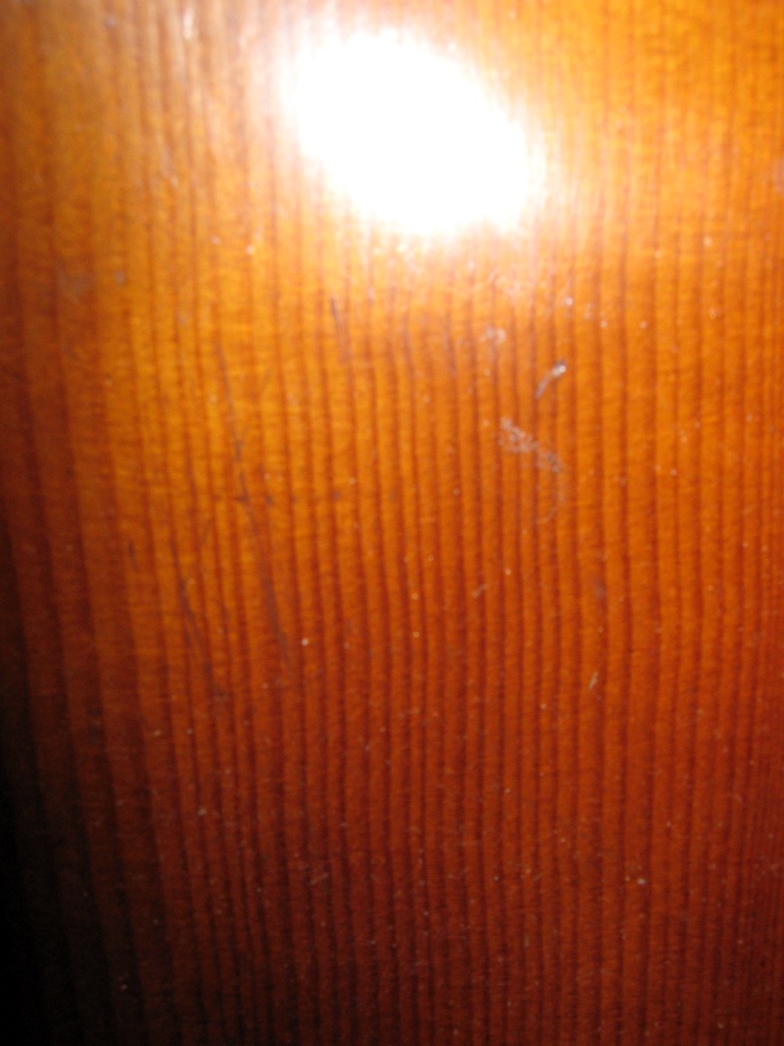 Das hatte er allerdings schon, als ich ihn gekauft habe, tut dem guten Ton aber keinen Abbruch. Ein versierter Geigenbauer kann das im Bedarfsfall sicherlich auch wieder ordnungsgemäß instandsetzen. Wie gesagt, mich hat's auch nie gestört und der Boss hat trotz alledem einen guten Ton.