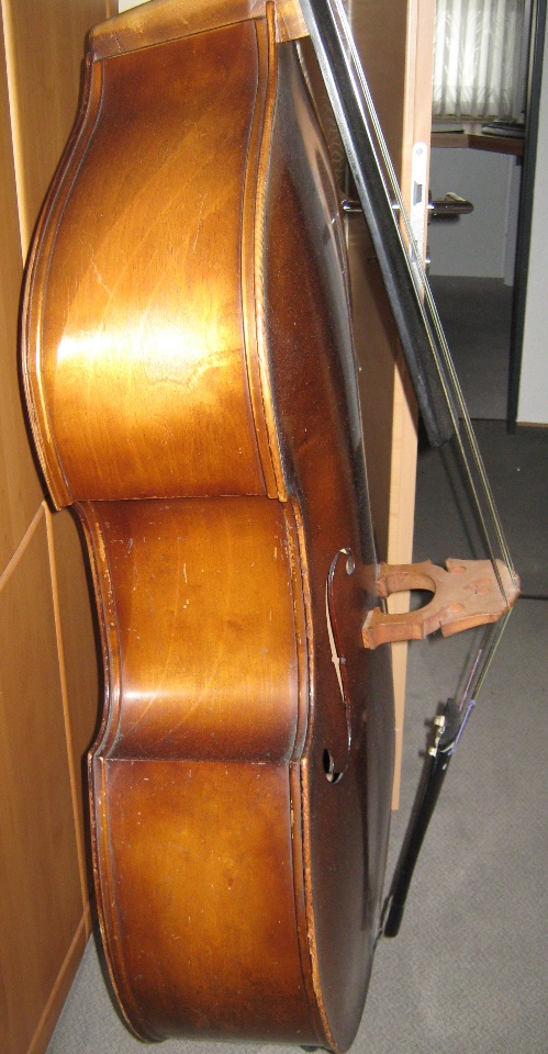Habe diesen Bass 1980 von meinem damaligen Lehrer erstanden, da hatte er den schon ca. 25 Jahre. Das Instrument lässt sich super bespielen, hat massive Fichtendecke, die allerdings eine Riss aufweist.