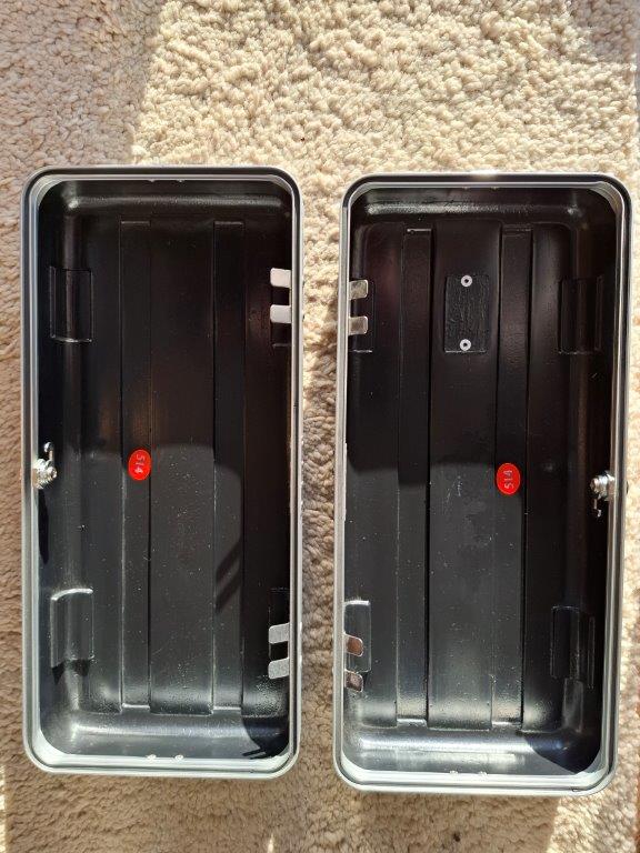 Beschläge und Rahmen nicht verformt, Butterflyverschlüsse funktionieren sehr gut, 2 Schlüssel sind dabei. Zustand wie ein Vorführgerät.