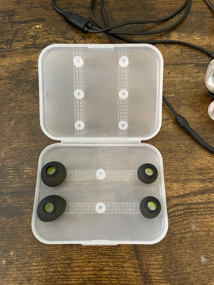 OVP ist dabei, unbenutzte Silikontips sind drauf, die anderen Größen der Packung lege ich dazu. Die originalen Tips in allen Größen + Fummelwerkzeug sind auch dabei.