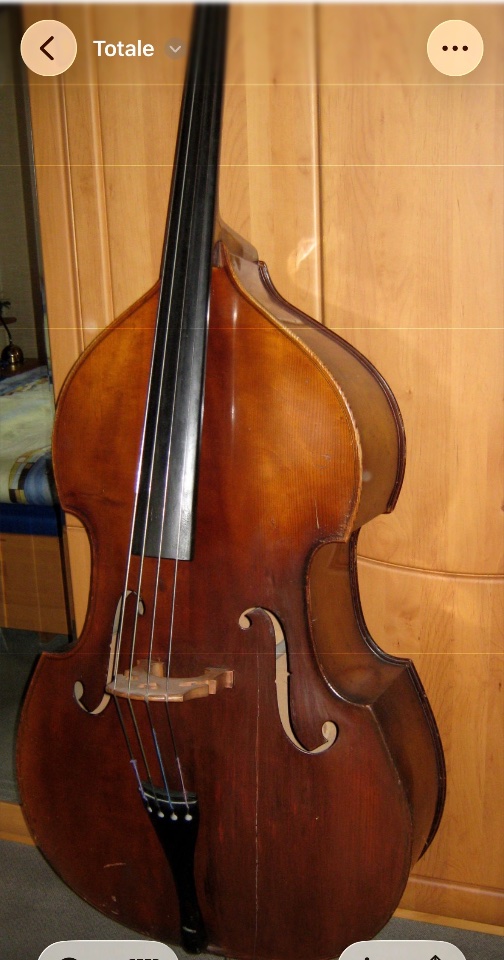Habe diesen Bass 1980 von meinem damaligen Lehrer erstanden, da hatte er den schon ca. 25 Jahre. Das Instrument lässt sich super bespielen, hat massive Fichtendecke, die allerdings eine Riss aufweist.